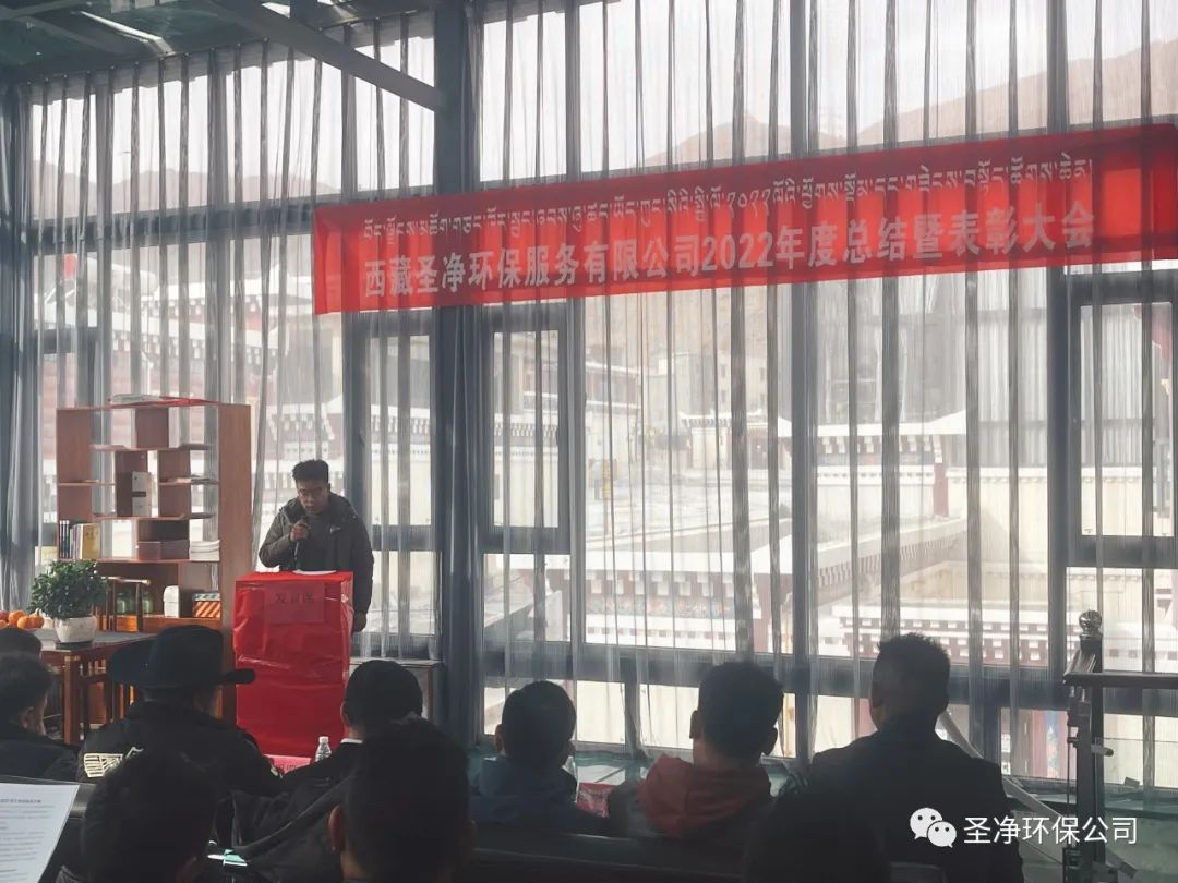 2023年2月17日11:00分,西藏圣凈環(huán)保服務(wù)有限公司在總公司二樓辦公室召開2022年度總結(jié)暨表彰大會(huì)??偨?jīng)理達(dá)瓦、股東尼瑪羅桑、股東達(dá)瓦多吉、副總經(jīng)理尼瑪次仁、公司顧問王常鵬、綜合辦公室主任旦真多吉、商務(wù)部經(jīng)理兼日喀則分公司經(jīng)理朗珍江參及各部門負(fù)責(zé)人、各分公司經(jīng)理、環(huán)衛(wèi)項(xiàng)目部經(jīng)理、污水處理廠廠長(zhǎng)、優(yōu)秀員工代表和總公司全體員工出席會(huì)議。