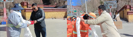 年輪流轉(zhuǎn),時光飛逝。告別成績斐然的2021年,迎來充滿希望的2022年,在這藏歷水虎年來臨的關(guān)鍵時刻,西藏圣凈環(huán)保服務(wù)有限公司展現(xiàn)新?lián)?dāng)、奮發(fā)新作為,積極發(fā)揚企業(yè)愛心文化精神。2月15日,總公司環(huán)衛(wèi)部經(jīng)理白瑪次珠、吉隆分公司經(jīng)理貢覺次達、吉隆環(huán)衛(wèi)項目部經(jīng)理旦增晉美等一行工作組在吉隆縣副縣長旦增羅白同志和縣住建局局長邊巴同志的陪同下,深入吉隆鎮(zhèn)開展了2021年度“送溫暖、送愛心、表彰先進”活動。