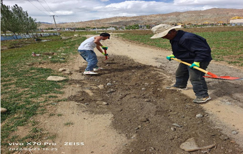 為了方便各級領導前來視察污水廠工作開展情況。同時,方便廠區(qū)工作人員及周邊群眾的日常出行。2022年5月24日,謝通門縣污水處理廠廠長拉巴扎西組織廠區(qū)工作人員及臨聘的小工對進廠的道路進行了全面平整。